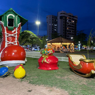 Este ano, a Praça da Bíblia foi transformada em uma verdadeira vila natalina. O local foi totalmente decorado com casa do Noel, casa de gelo, artefatos iluminados, casa de neve, artigos de fibra de vidro típicos natalinos, presépio com personagens, entre outros.